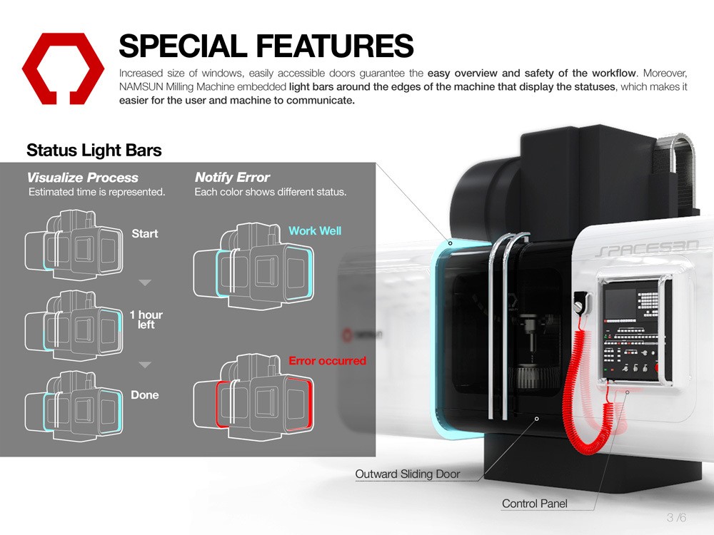 The new design of SPACE 530 Milling Machine is a new machinery line that represents a new generation of milling machines. The new design language not only gives out a professional image, but also ensures more reliability and quality. The usability of the machine is greatly improved for the users to easily operate. Increased size of windows, easy access doors and status lights bars guarantee the best overview and transparent workflow.